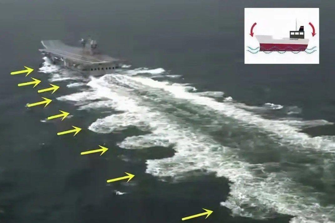 我們來看一下這次海試,你看這次海試的時候,航母后面的航跡線,是不是很光滑平直,這就說明動力系統沒啥問題。你再看印度航母海試的航跡線,像是一個鋸齒一樣,爲啥會這樣呢?