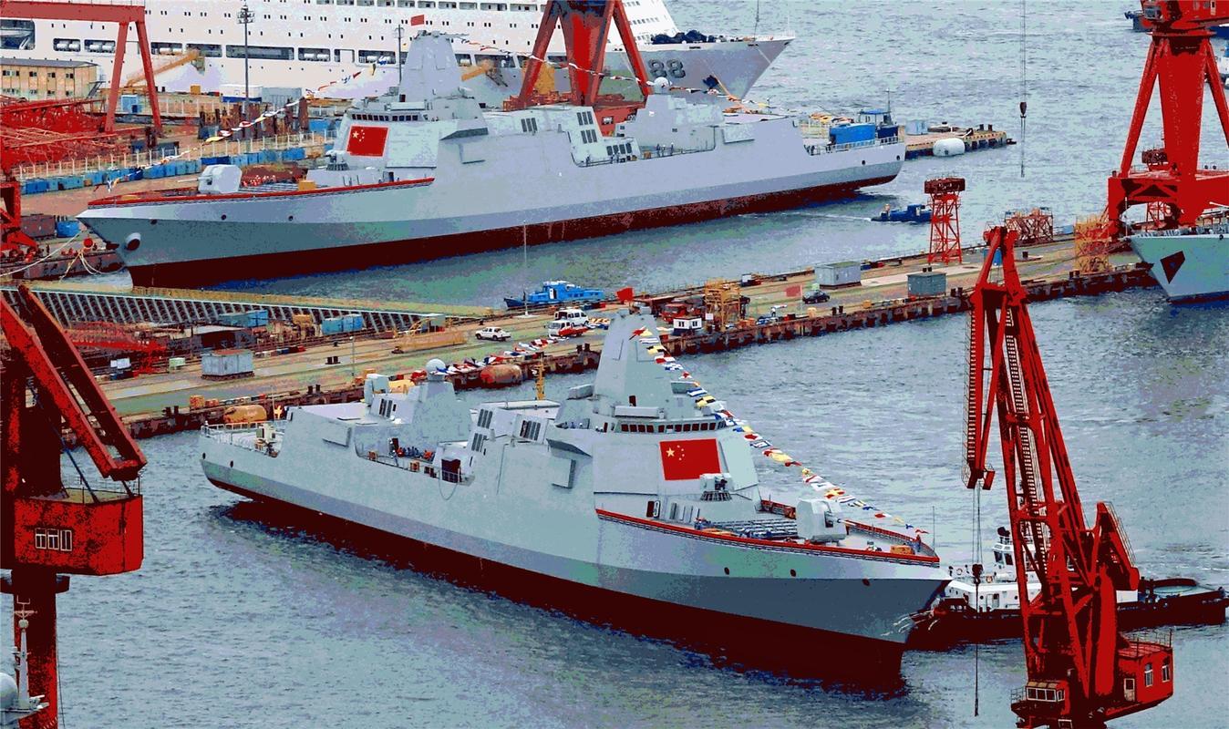海軍的055萬噸大驅,自從新批次開工起建之後,量產的速度也在不斷地創造紀錄,四艘已經初步完工的大驅,開始陸續下水進行舾裝,另外4艘也在緊張打造當中,其中有兩艘在同一個船塢開工建造。
