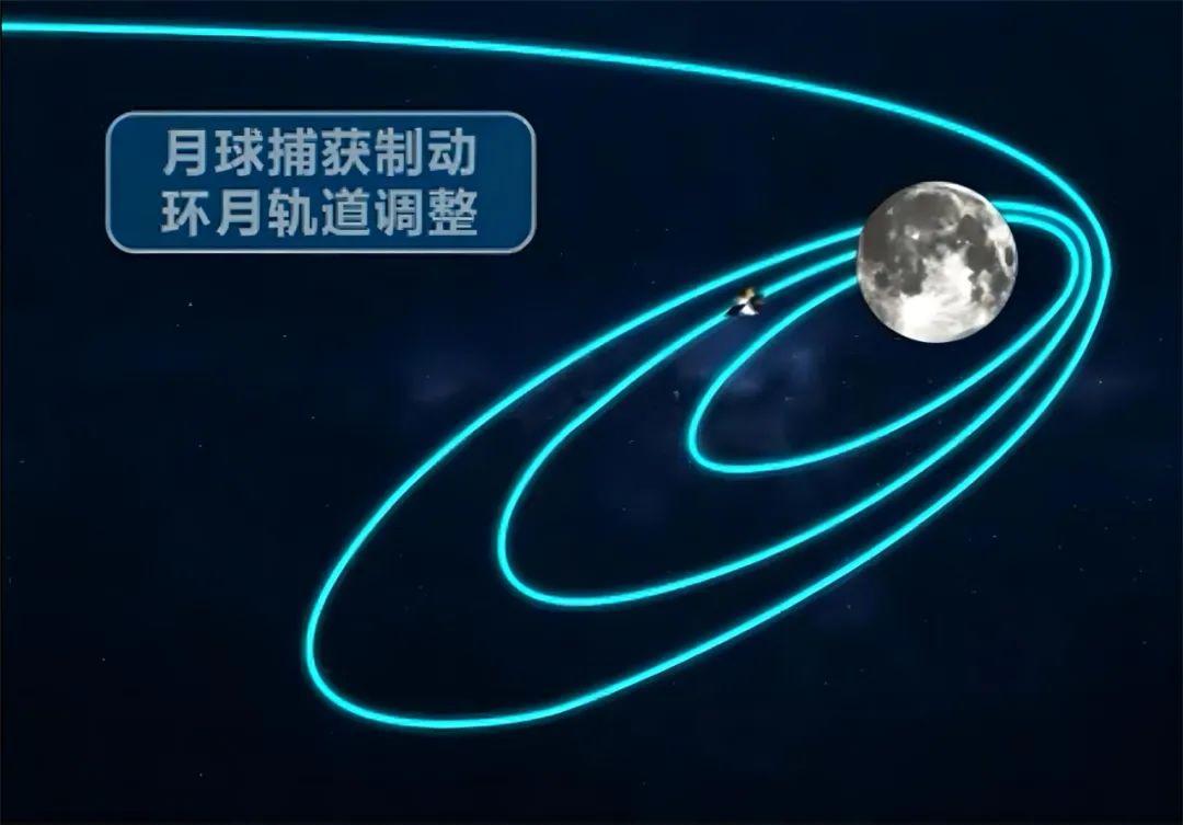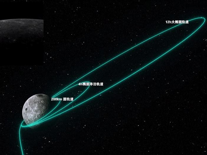 首先是在月球軌道制動降軌,現在進入的是月球12h大橢圓軌道,接下來還要進入到4h橢圓停泊軌道,以及進入到200公里圓軌道。。