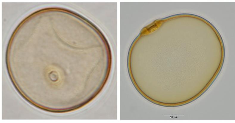 光學顯微鏡下現生水稻花粉形態 (圖片來源:毛禮米)