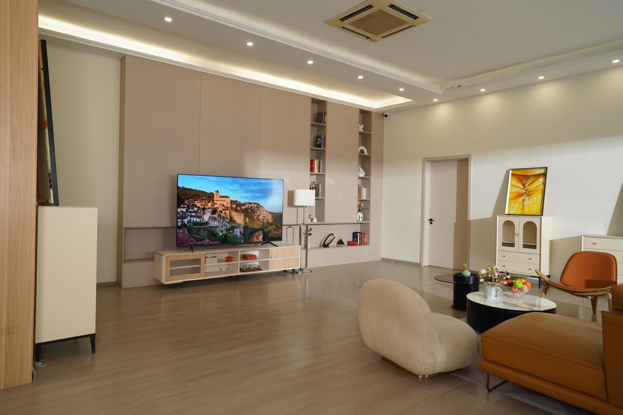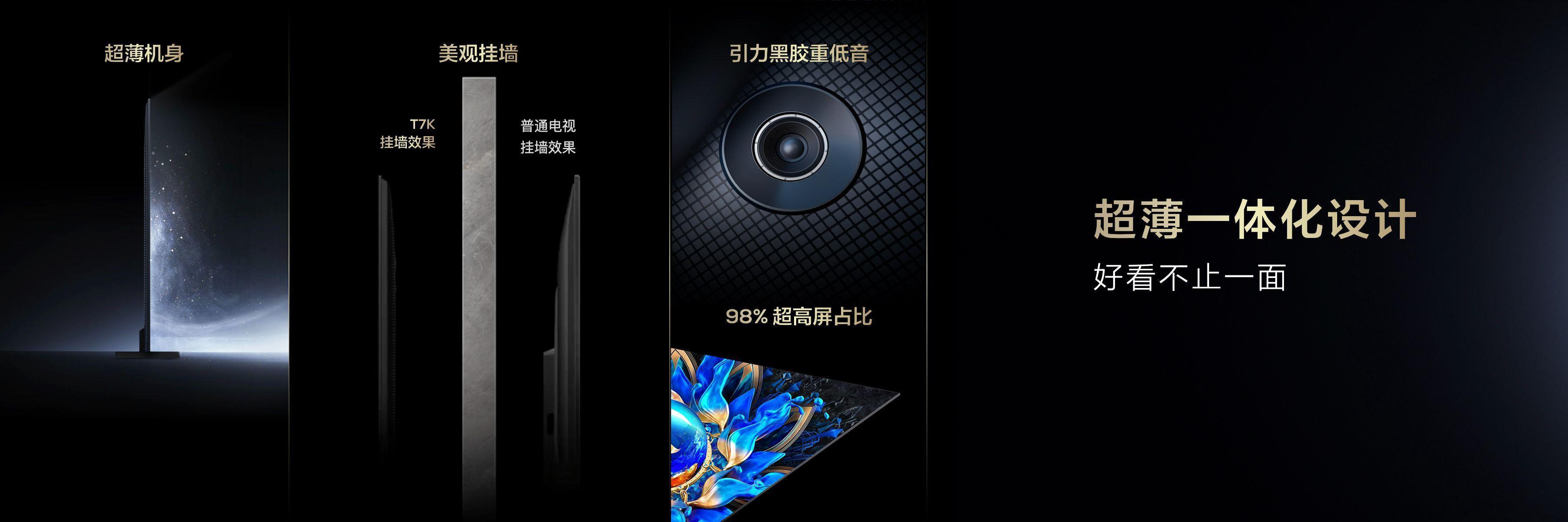 別具匠心的前衛設計,純平一體化超薄設計,完美貼合牆面,讓整體家裝設計更加自然和諧。同時,超大屏幕設計+超高屏佔比吸引眼球,讓用戶的視線更聚焦,觀影體驗更加沉浸。