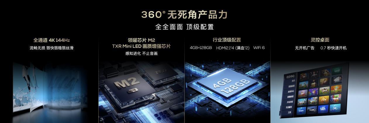 全通道4K 144Hz,靈控桌面秒速啓動、無開機廣告,Wi-Fi 6,HDMI 2.1*4,這不只是配置的堆砌,是全方位、無死角的性能怪獸。從硬件到軟件,T7K都在告訴你,它,就是次世代家庭娛樂的不二之選!總而言之,TCL T7K Mini LED電視,是技術宅夢寐以求的視聽首選,是每一個細節都經得起推敲的匠心之作。如果你對生活品質有着近乎偏執的追求,那麼,T7K絕對值得你擁有!