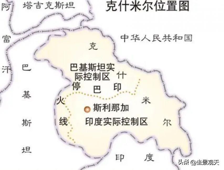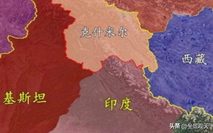 【克什米爾和印度、巴基斯坦的位置關係圖】