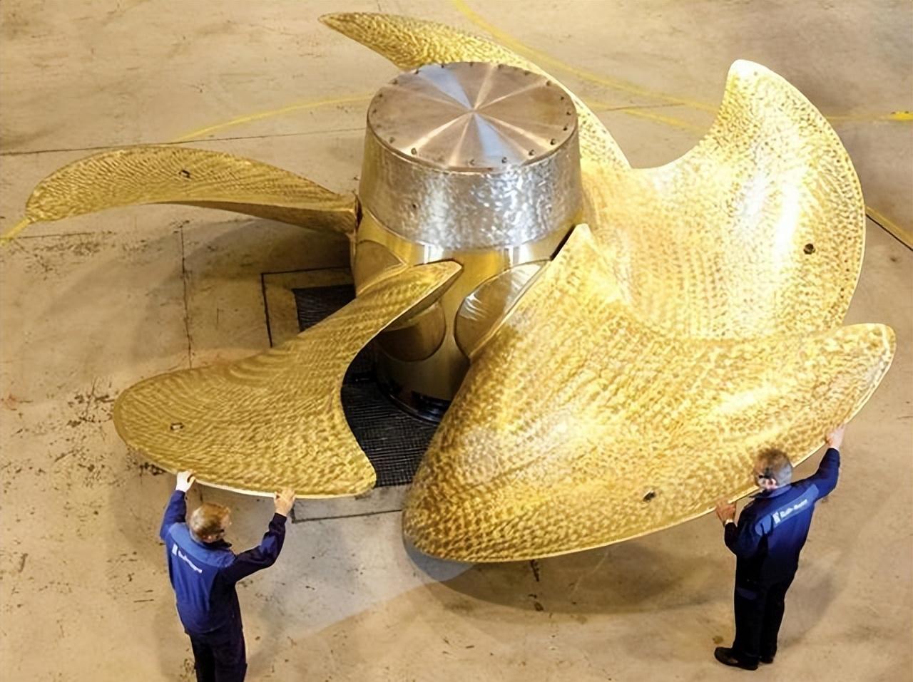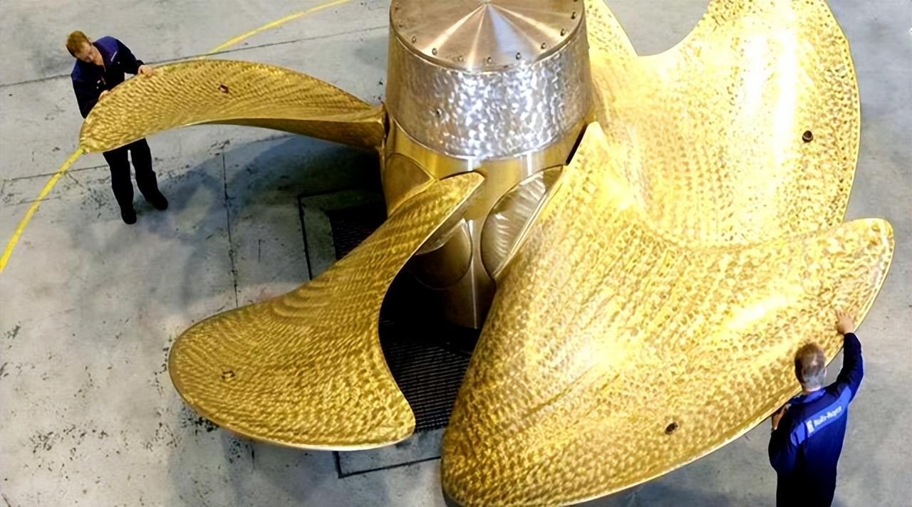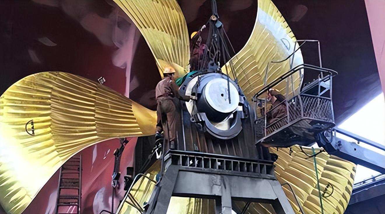 我國鎮江中船研發的超大型螺旋槳,體積巨大,直徑達到了10米,相當於三層普通的居民樓高度,全速旋轉的時候,這個直徑相當於美國航母螺旋槳的兩倍,爲我國航母提供高速航行進行了有力保障。