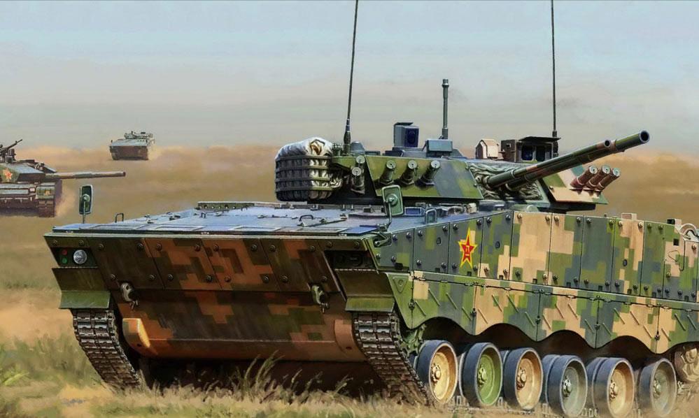 04A步兵戰車,這款步兵車是採用履帶式設計,對地形適應能力更強,也是摧毀敵人目標和控敵更爲強勁的武器。殲滅敵人和發動猛烈攻勢時,還輔助先進的信息作戰能力,實現全域打擊,火力和信息結合,實現現代化戰場的突擊和增援。