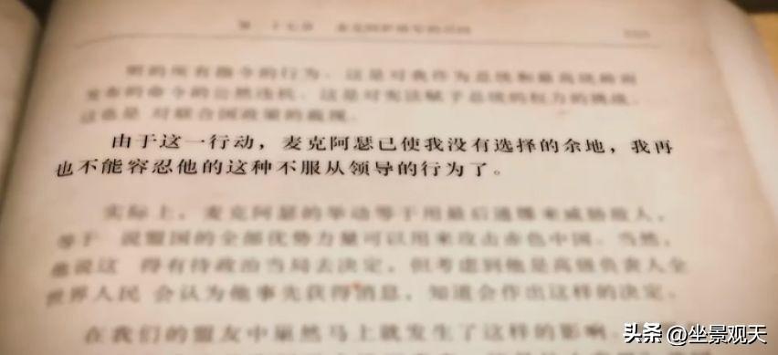 “麥克阿瑟已經使我沒有選擇的餘地了,我再也不能容忍他的這種不服從領導的行爲了。”