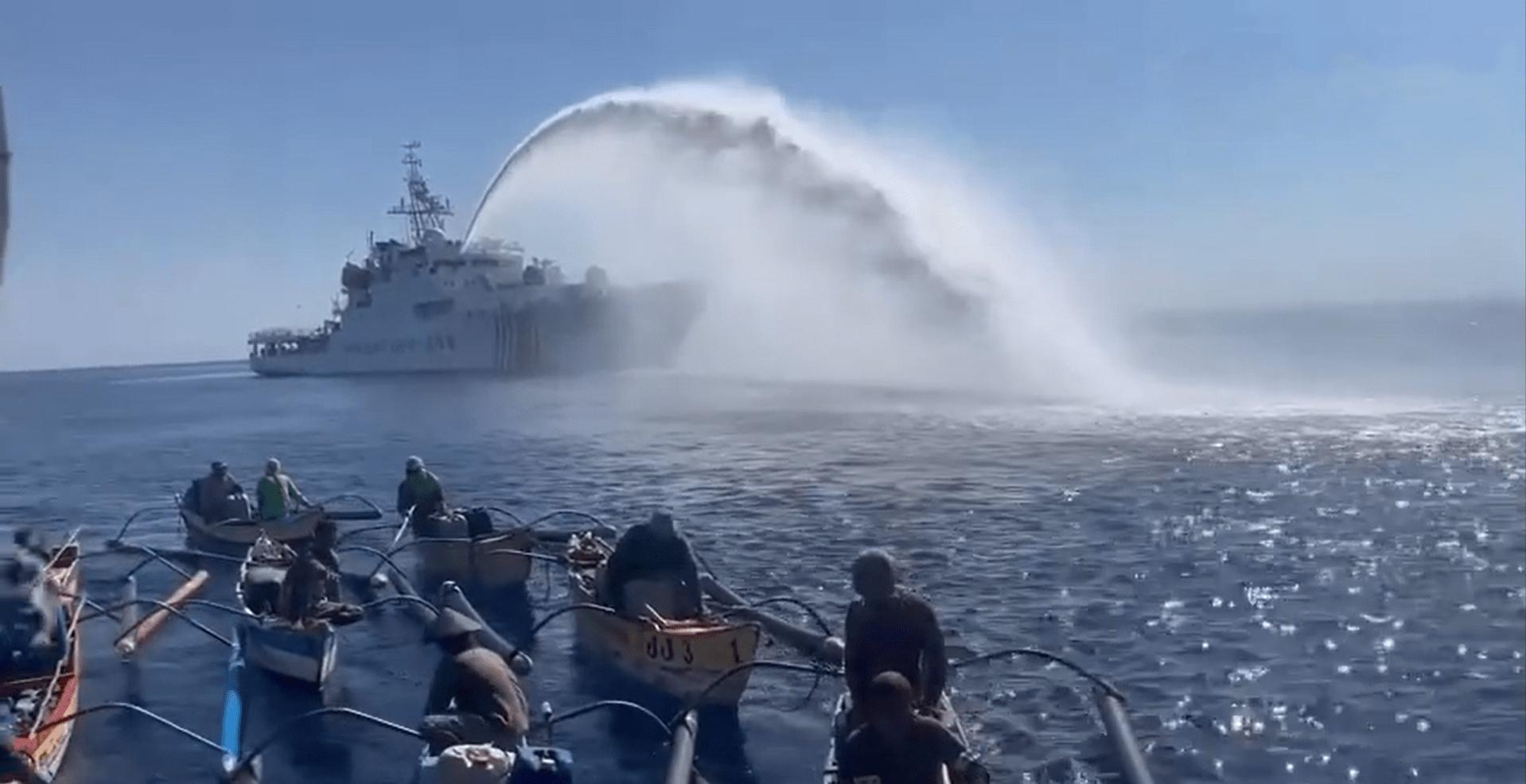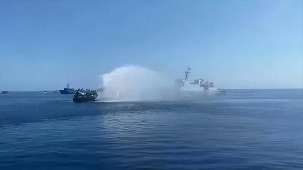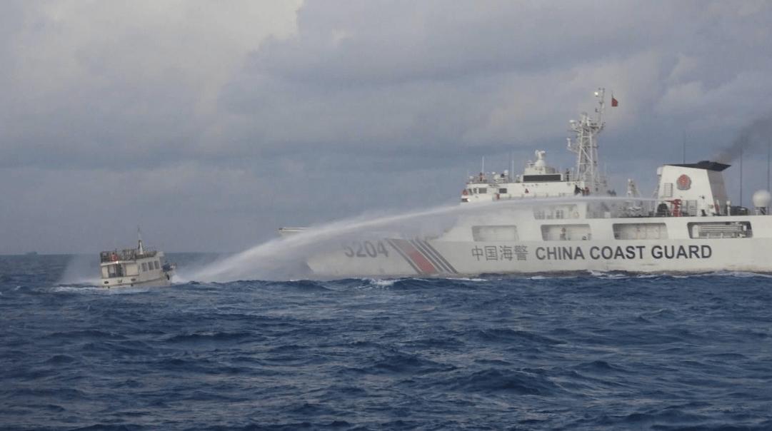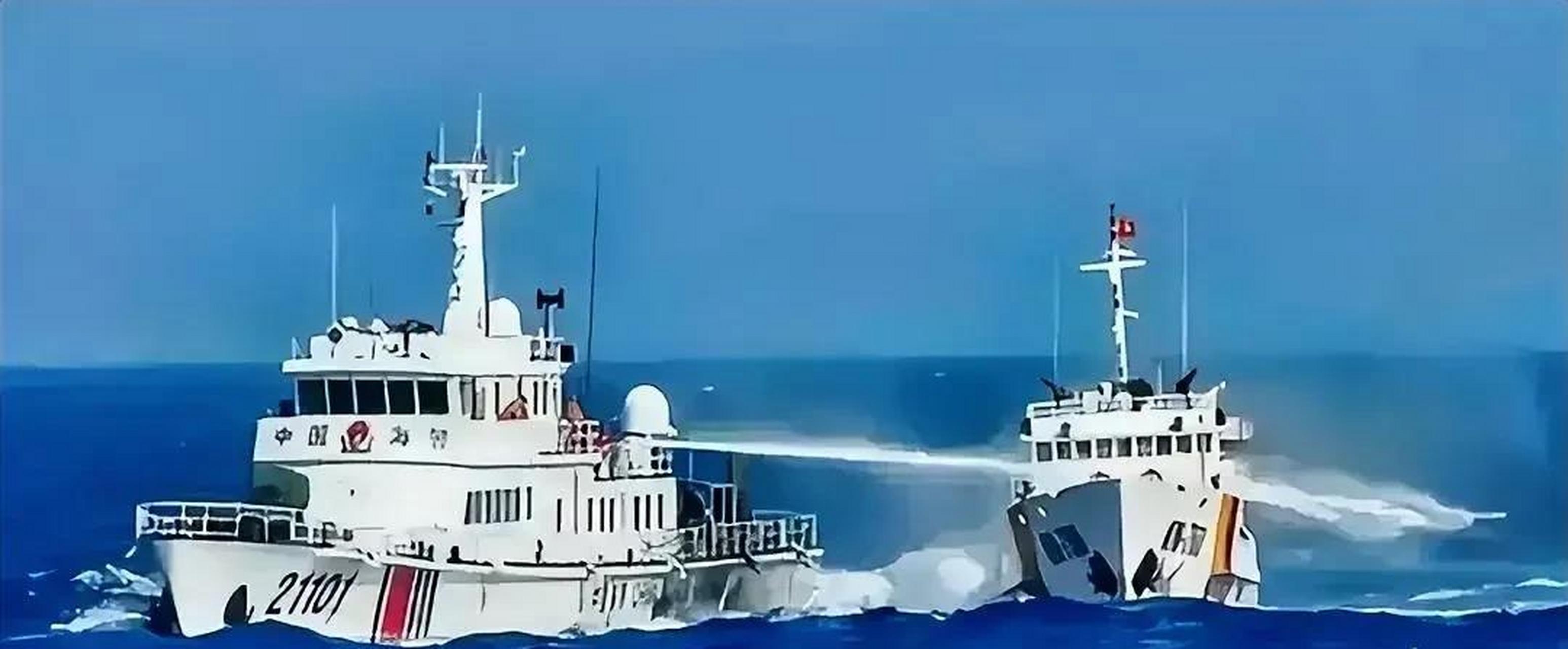 近日菲律賓的非法船隻,想要運送一些補給,其中又偷偷夾帶,加固非法佔據島礁船隻的建築材料,強闖我海域未遂,就被我國海警的水炮打到癱瘓,菲方的船隻想要強闖我國的仁愛島礁,我海警船攔截,發射水炮驅趕,導致菲方船隻被打到七扭八歪,需要拖船才拽回菲方。
