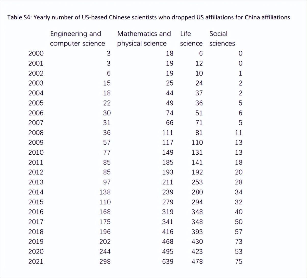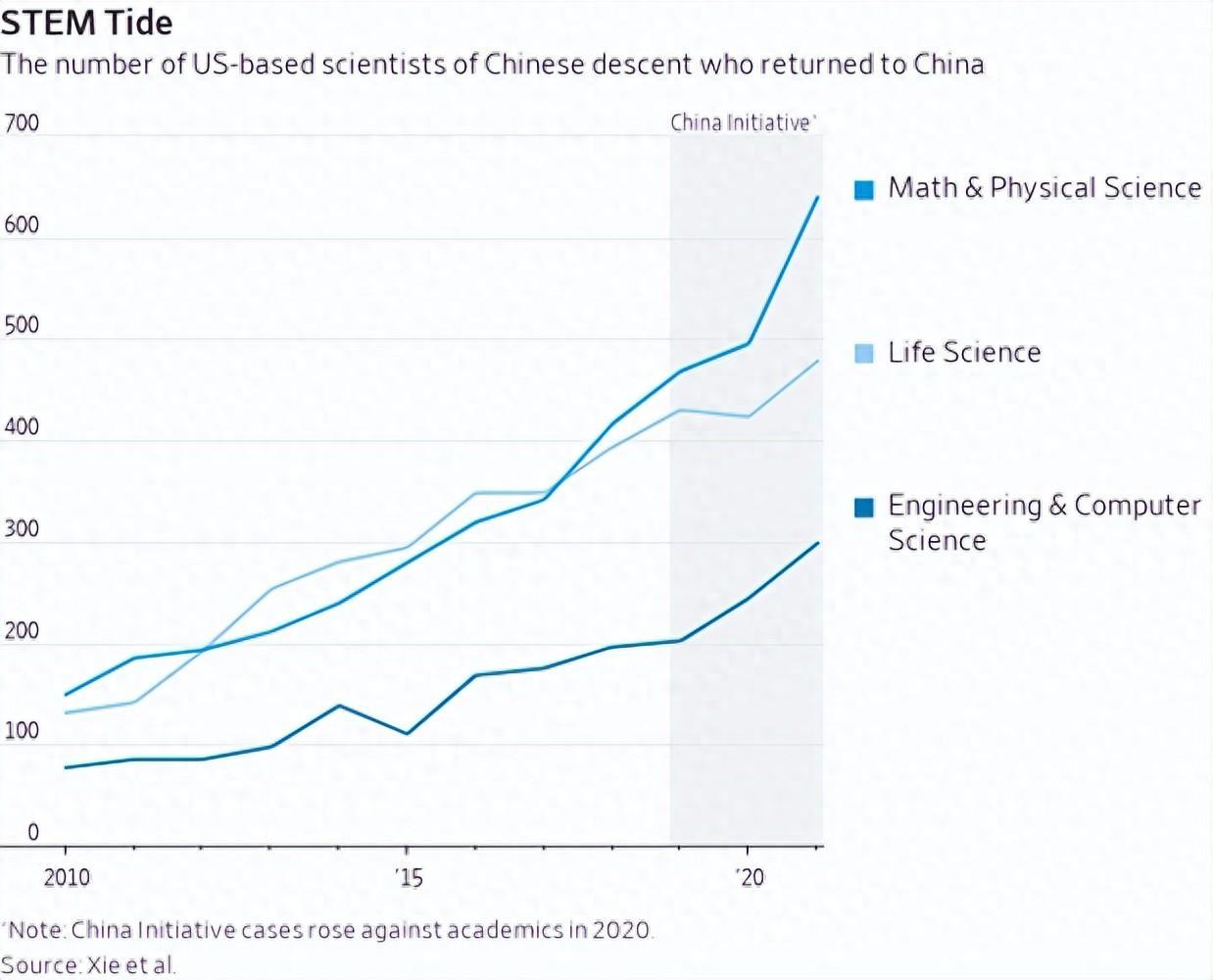 尤其是數學與物理科學、生命科學和工程計算機科學領域的專家,回國人數最多,總體呈上升趨勢,並且還在加速離開美國。