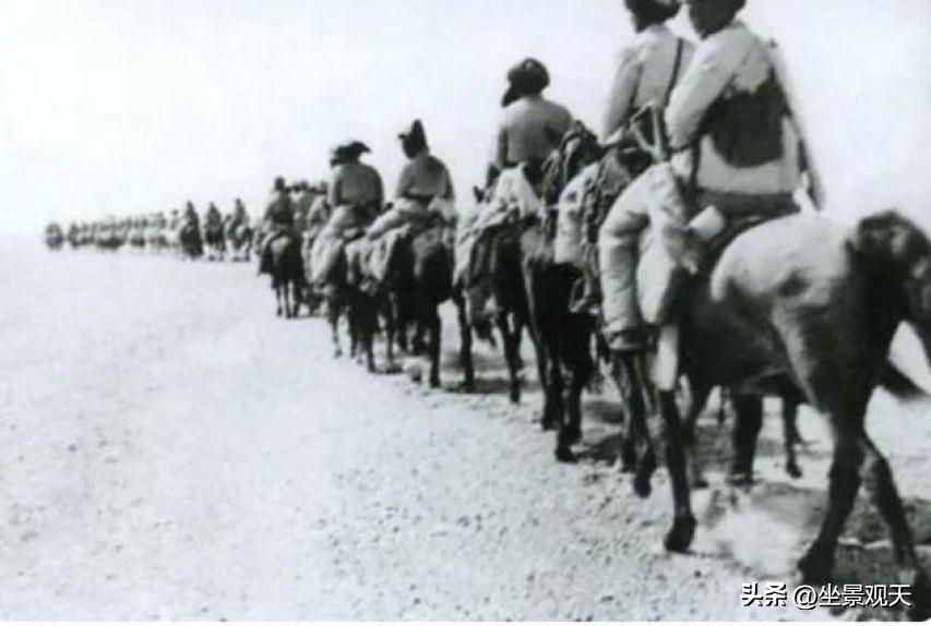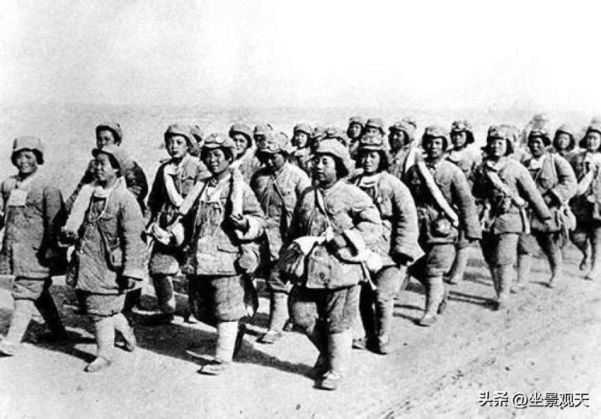 【一野進新疆時,行進在戈壁灘上的解放軍女戰士】
