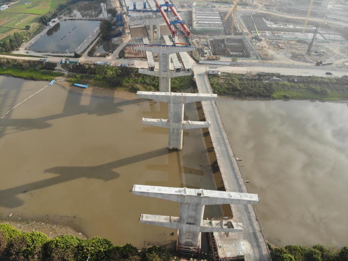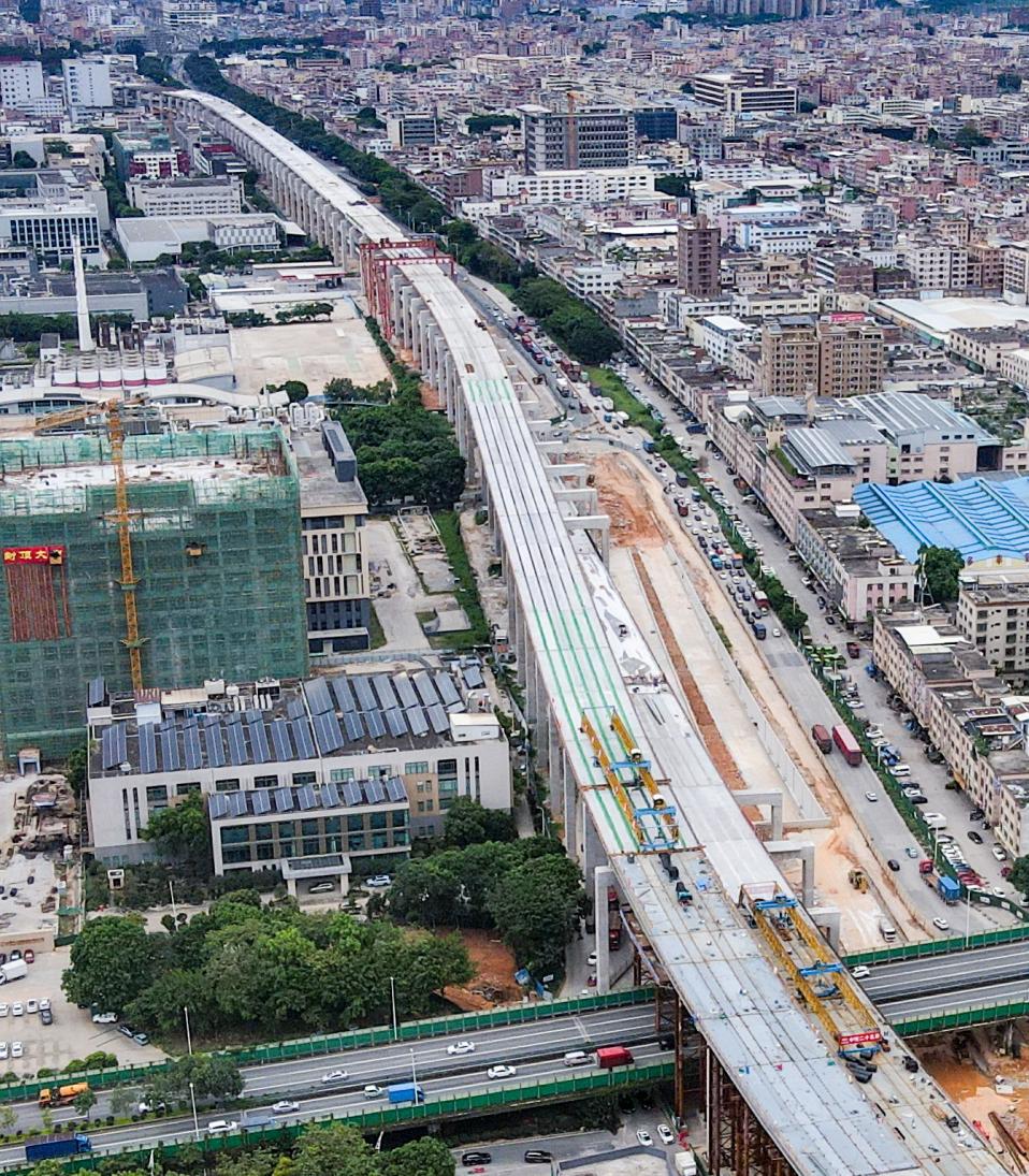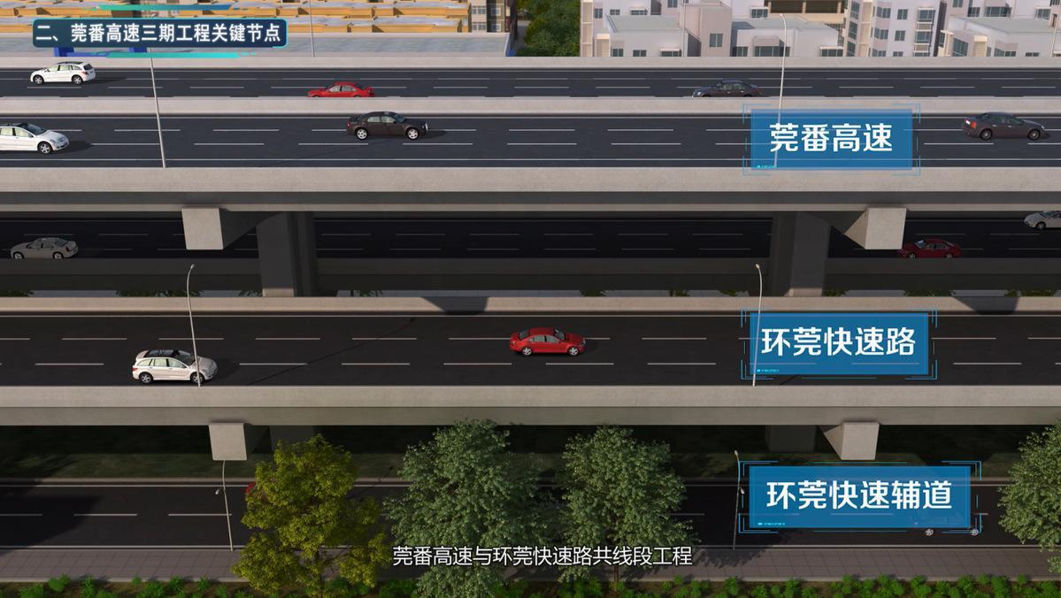 莞番高速是從東莞到番pan禺,全長64.48公里,分三期工程,其中一期和二期已經通車了,這次要講的,是最後通車的三期工程,全長18.1公里,里程不長,但是橋隧比達到了97.8%,幾乎都是大橋,沿途穿越城鎮密集區域,工程難度最大的,就是徵地。