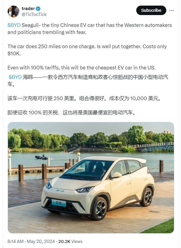 中國的一款電動車,把美國車企和政客快整崩潰了:美國貴3倍