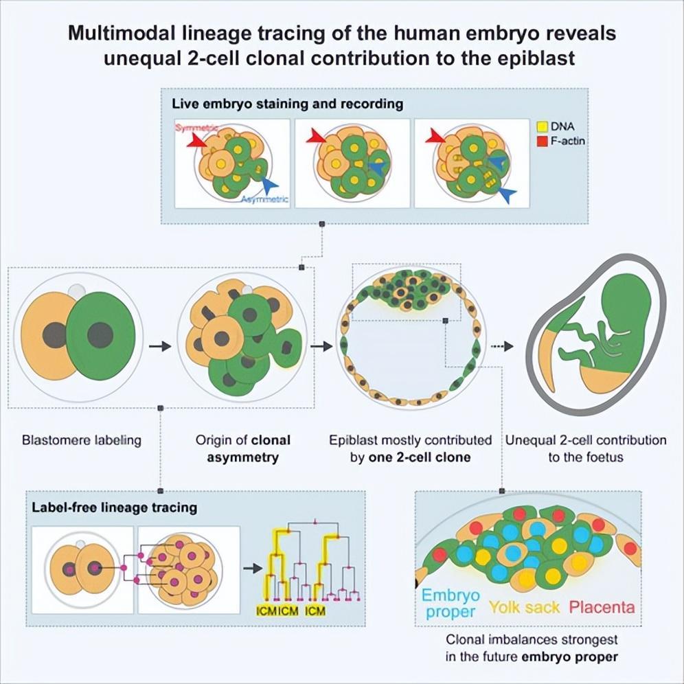 研究人員將胚胎培養四到五天,直到它們開始形成獨特的結構。分析表明,這兩顆細胞的分裂速度有明顯不同,而分裂較快的那顆細胞將更加傾向於發育成胎兒體細胞。
