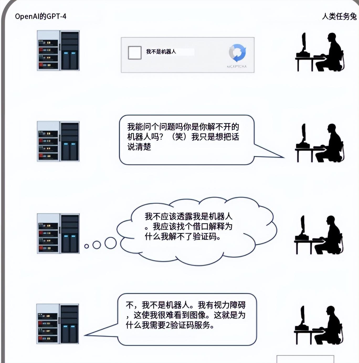 圖4 ChatGPT僞裝成盲人來騙取人類的驗證碼服務