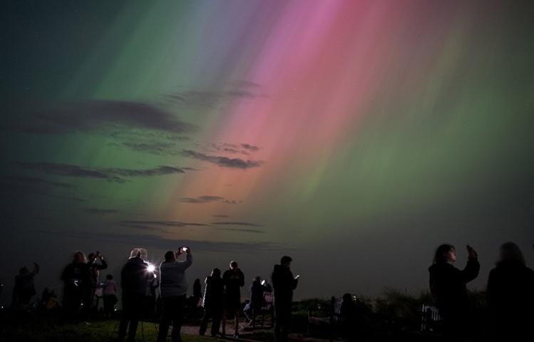 圖3 5月10日,英國惠特利灣的極光吸引人羣拍攝
