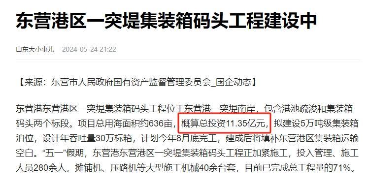話又說回來啊,一直知道美國物價“高”,就是沒想到這麼高啊,3.2億,還是美元,摺合成人民幣23億了。前幾天我們的東營港區建設了,擬建設5萬噸級集裝箱泊位,設計年吞吐量30萬標箱,總投資才11.35億元,你再看看美國花了那麼多錢,搞的是啥玩意。不是我說,就這工程,在中國隨便找個施工隊,都能辦的比這好。
