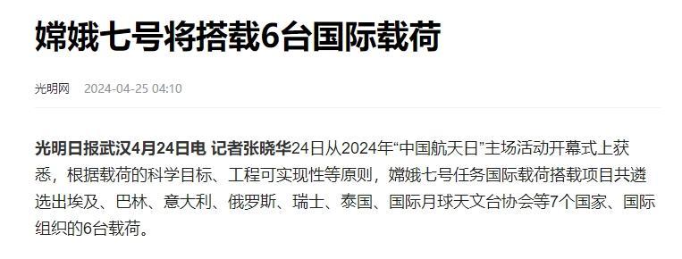 對於中國來說,登月已經駕輕就熟,那我們也不是那種只顧着自己發展的國家,也願意幫助兄弟們,比如這次嫦娥六號,我們在滿足自己需求的同時,還有20公斤的載荷空餘出來,於是就在國際上振臂一呼,誰想登月,巴基斯坦、法國、意大利和歐空局站出來了,搭着咱們的順風車登月了。