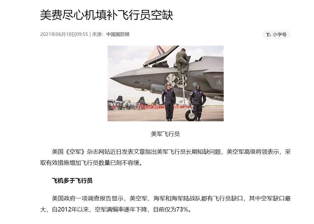 回過頭再看飛行員的問題,美軍飛行員短缺的問題已經持續很多年了,去年媒體還報道說,空軍的海外任務已經無法全數執行了。