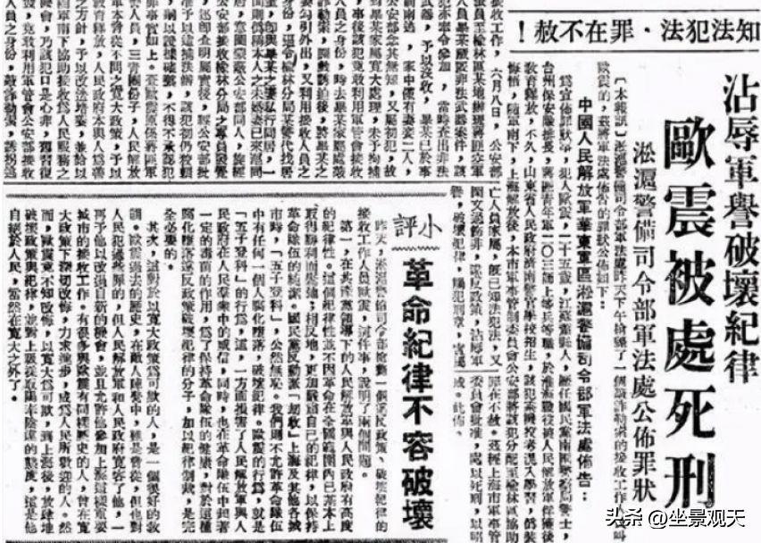 在歐震行刑的當天,上海諸多民衆都進行了圍觀,就連解放日報等各大報刊也進行了相關報道。