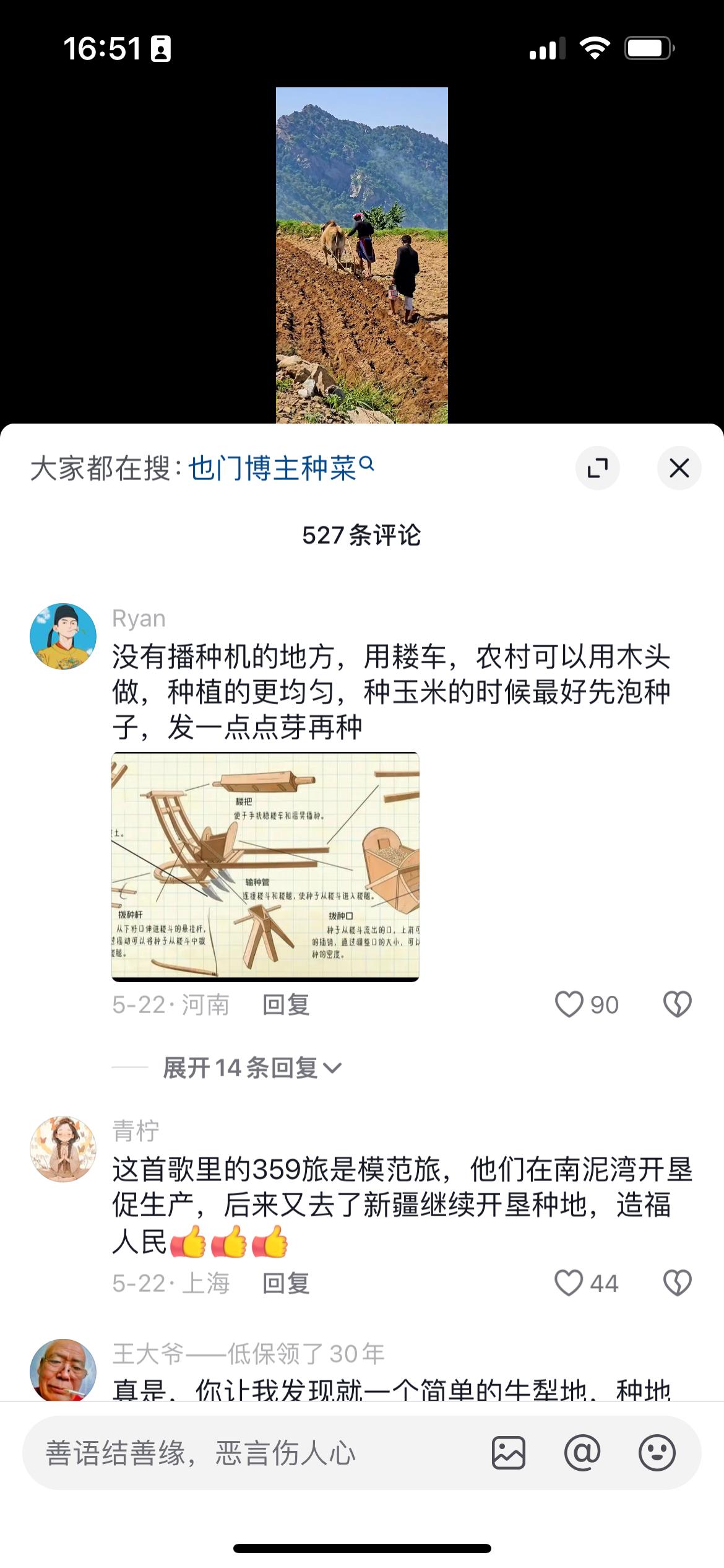 實踐後當犁子夾在雙牛背上,光看着就喫力,於是評論區出現了一老祖宗的智慧,曲轅犁!迴轉自如,便於深耕單牛就能操作,後面直接上科技,旋耕機,老外也聽勸,讓怎麼改就怎麼改,一切有條不紊進行中,