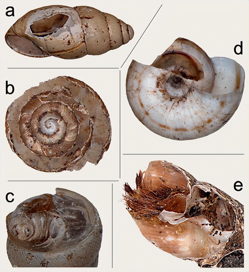被各種動物捕食後的蝸牛殘骸 (圖片來源:參考資料7)