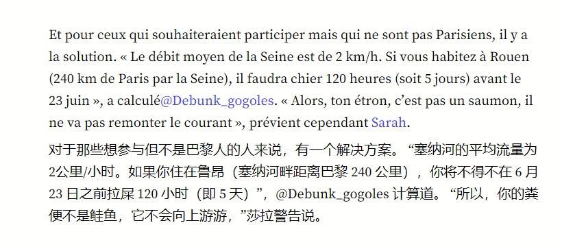 這下法國人又不敢了,覺得你爲了面子,把稅收都用在了奧運身上,沒有去改善基礎設施和居民生活條件,所以要搞事,所以要搗亂。看到馬克龍要在6月23日在塞納河游泳,“樸素的”法國人決定要給自家總統一點顏色看看,於是發起了:在塞納河拉粑粑的活動。