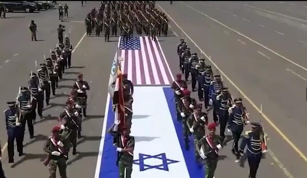 腳踩美國以色列國旗,