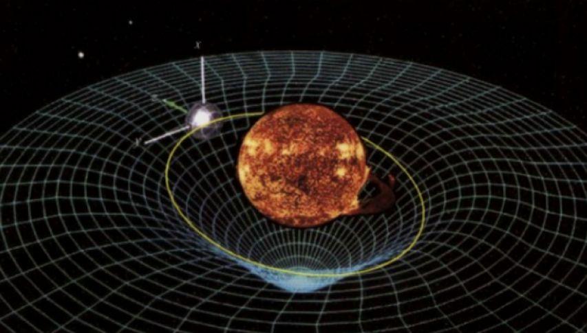 而愛因斯坦對地球圍繞太陽轉的解釋是這樣的,引力其實就是時空的彎曲。