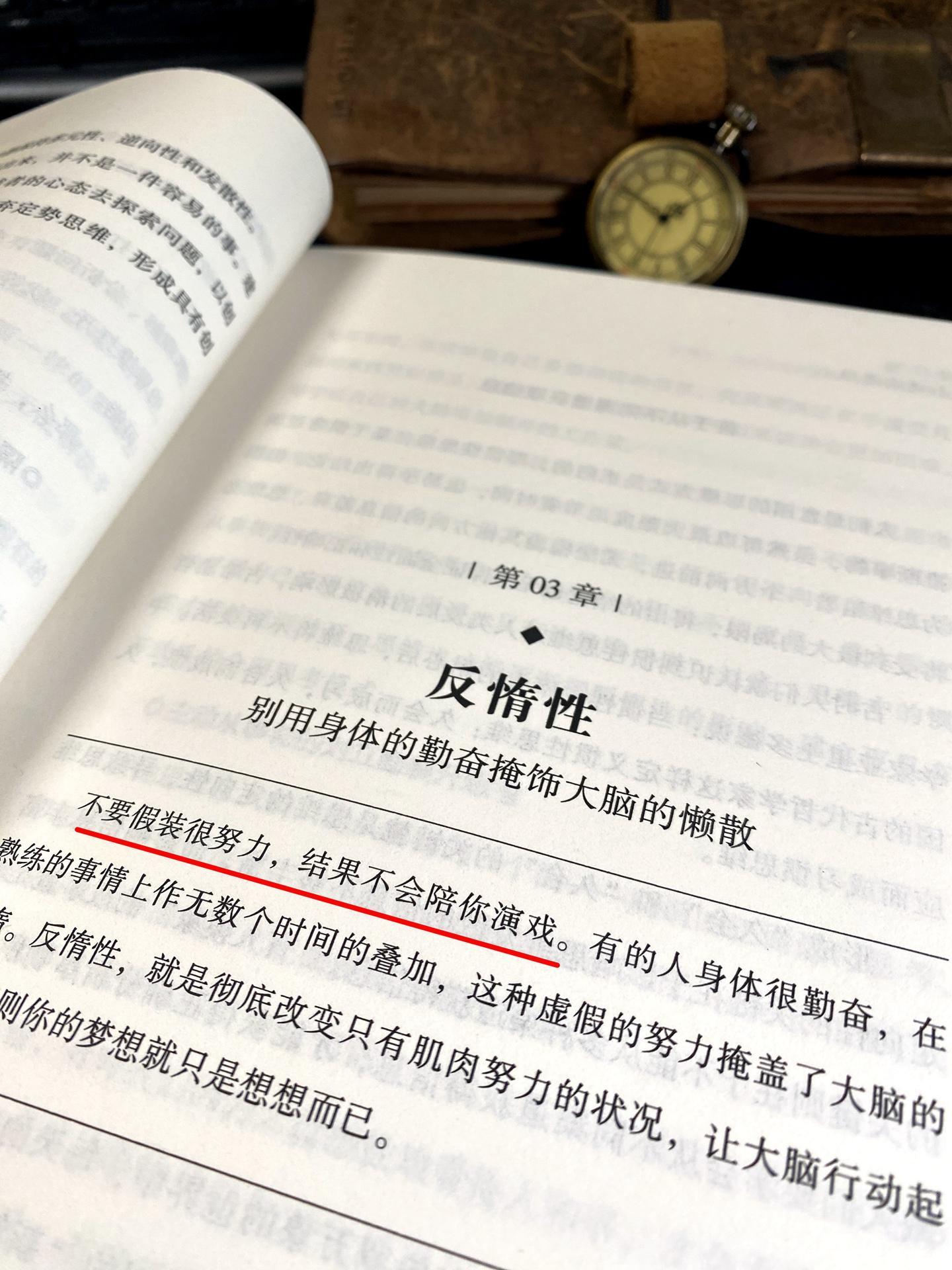 所以永遠不要假裝努力,結果不會陪你演戲。這是《逆向思維》這本書裏的一句話,雖然我們因爲語言學會了欺詐,但文字卻能讓我們更清醒。這本書全方位系統地告訴我們,逆向思維是什麼,有什麼用,如何才能做到,相信看完之後會很有收穫,甚至能讓你的人生重新來過。