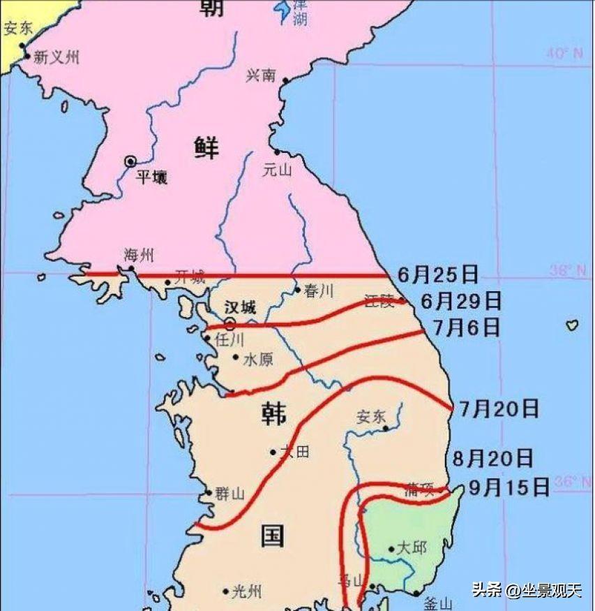 但是朝鮮人民軍的戰鬥力也不是蓋的,朝鮮戰爭打了一個月,幾乎都要把美軍和韓國給趕出朝鮮半島了——當時朝鮮佔據了朝鮮半島90%的領土。