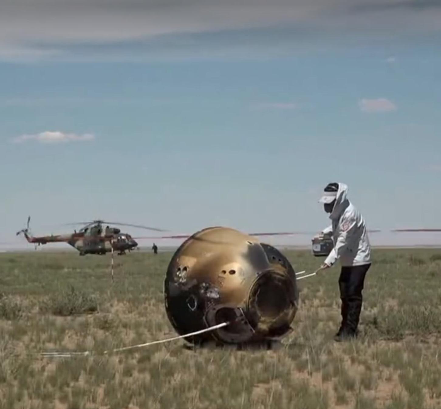 咱們的嫦娥六號,是從38萬公里外的月球回來的,而且,嫦娥6號返回艙越黑,說明隔熱效果越好,咱們的隔熱瓦很先進,蜂窩狀的防熱材料能通過吸收熱量,來實現隔熱,燒的越黑,裏面溫度就越低,外面2000℃,裏面26℃,這讓你想到什麼,沒錯,這就是爲載人登月做準備的。