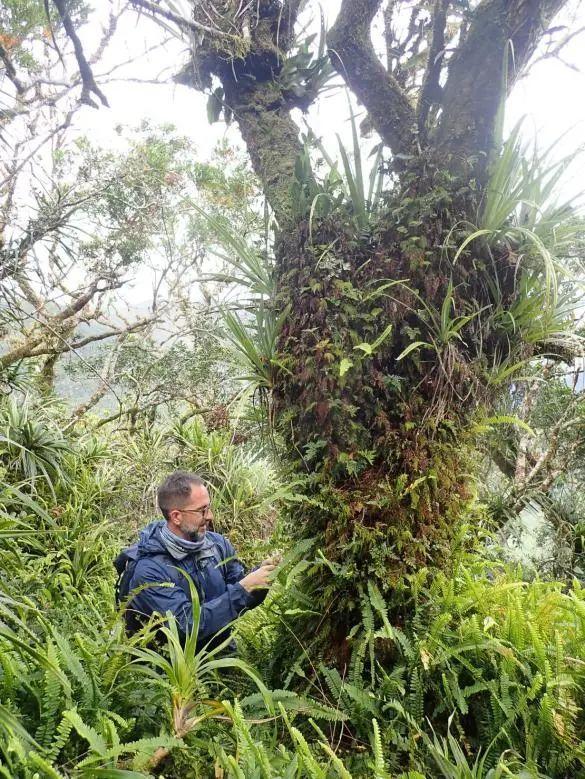 本研究通訊作者Jaume Pellicer教授在調查附生梅溪蕨的生境 (圖片來源:Oriane Hidalgo)
