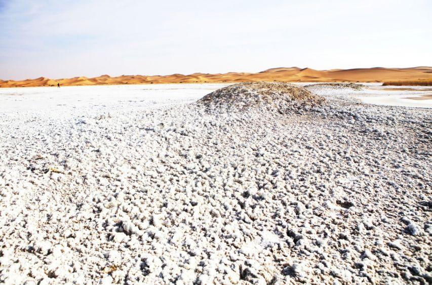 更可怕的是,這些鹽鹼地的顆粒,還會跟隨着沙漠的風沙,一點一點地侵蝕原本人類居住的地方,對本就稀少地耕地、水源和空氣造成了污染。
