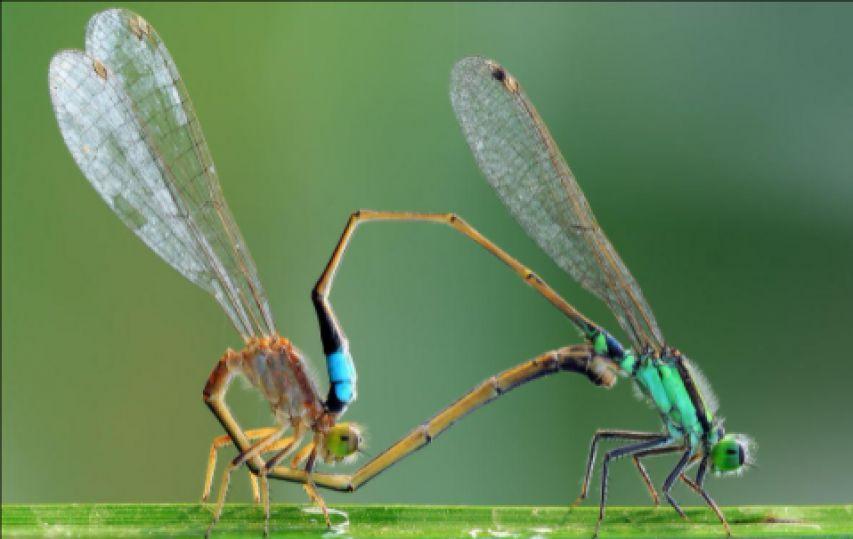 蜻蜓和豆娘都屬於蜻蜓目昆蟲動物,它們在交配時,會利用生殖器在雌性生殖道中反覆清理,以防止其他雄性的精子留存。