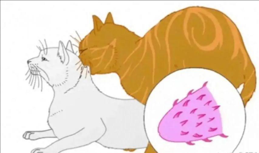 雄性貓科動物的生殖器內部有許多海帶狀結構,這使得雄性貓科動物的生殖器看起來就像一個狼牙棒,上面全是刺,並且還是倒刺。