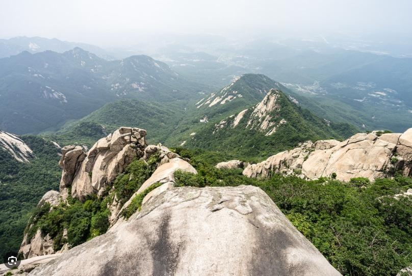 領土面積才10萬平方公里,但70%以上爲山地,連首都都建在山中,登山的路也不一樣,像中國稍微知名度的山,陡峭的有纜車,或者景區大巴,海拔再高都有樓梯,可在韓國全靠人走出來的,在那邊登山要手腳並用!沒樓梯的好處也有,不收門票錢!