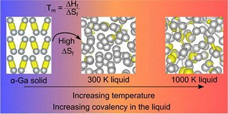 這個發現否定了科學界過去30年來對液態鎵結構的基本假設,需要科學家們對鎵的低熔點做出新的解釋,研究人員認爲,這可能是因爲這些鍵消失時,熵大幅增加,從而導致了原子的釋放。