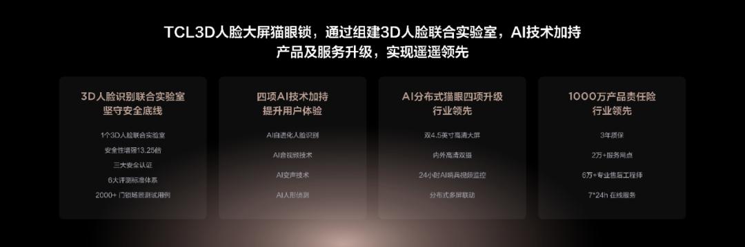 作爲“2024智能鎖行業產品科技創新獎”的獲獎者,在質量過硬的同時,技術創新也是硬實力的體現。TCL智能鎖今年將3D結構光人臉識別技術和AI進行了完美融合,給到用戶最極致的刷臉入戶體驗。