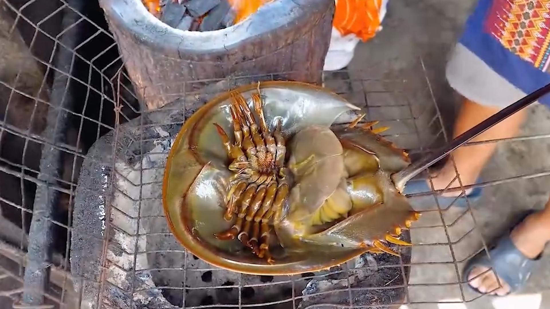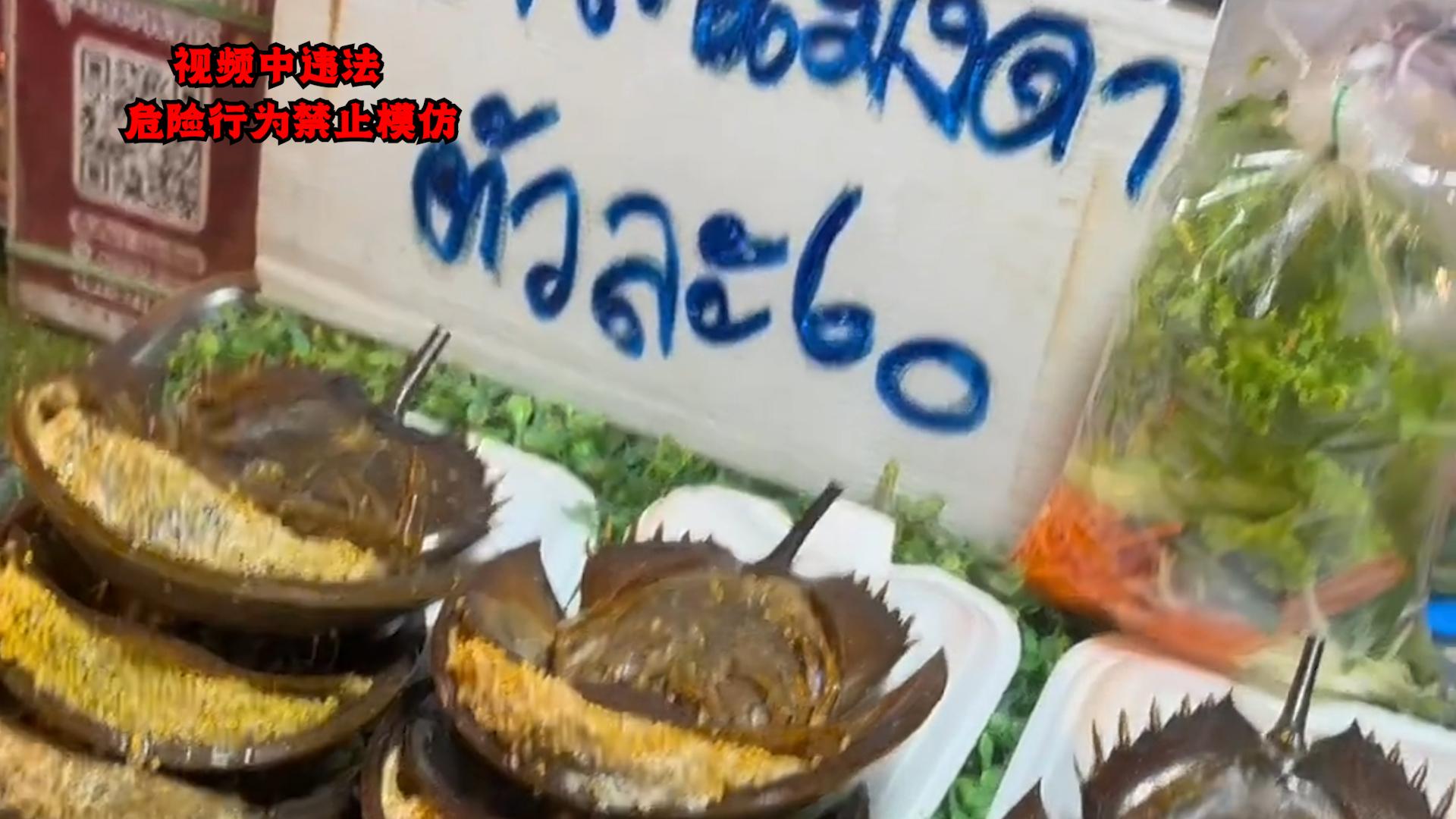 國內保護!國外享受!指的就中華鱟(hou 四聲) !它表示很無語,都花了上億年進化成沒肉的樣子!還無法逃脫被喫的命運!好不容在中國被列爲二級保護動物,結果在泰國可沒人慣着,分解做成料理!泰國夜市上60泰銖一隻,比大閘蟹還便宜,摺合人民幣才12元一隻,你可以選擇蒸着喫,烤着喫,最常見的是涼拌鱟蛋!