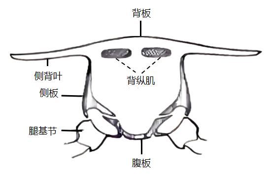 昆蟲胸部結構截面 (圖片來源:改編自《普通昆蟲學》教材)