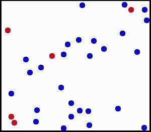 中子(紅色)與氫原子(藍色)發生碰撞, 動能在粒子之間傳遞,最終趨於平衡。 (圖片來源:wiki)