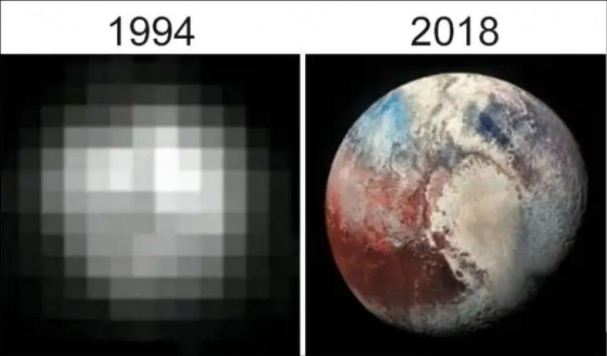 因爲距離太遠,上個世紀人們給冥王星拍的照片幾乎就是一張馬賽克,直到“新視野號”從冥王星旁邊路過後,我們才擁有了清晰的冥王星照片。