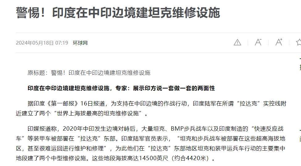 而且,當時中印邊境對峙之後,印度在這裏部署了大量的坦克、裝甲車,結果呢,因爲是高原,這些坦克、裝甲車很難運回去維護和修理,很影響坦克和裝甲車性能有沒有。今年5月份,印度呢,還在中印邊境建了兩個裝甲車維修設施,這也是世界上海拔最高的裝甲車維修設施。