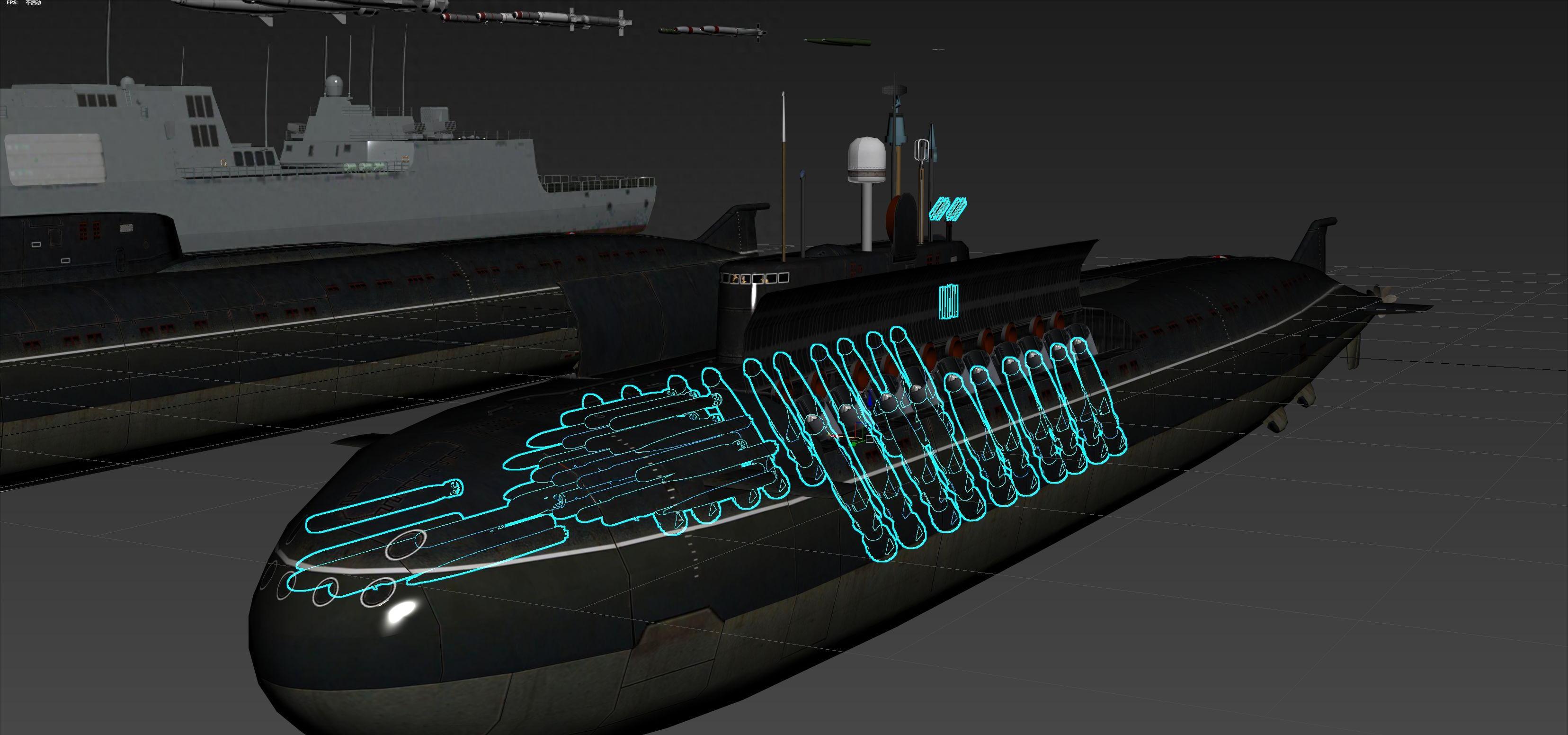 在作戰威力方面,能夠一次攜帶24枚P-700反艦導彈,射程爲550公里,可以切換核彈頭和常規彈頭,形成巨大的威力。