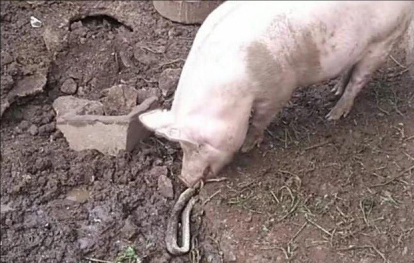 野豬能通過蛇的味道鎖定它們的位置,尤其是冬季,蛇在土層裏冬眠的時候,野豬的鼻子貼着地面就像雷達一樣掃過去,很容易就能發現蛇的藏身之所。