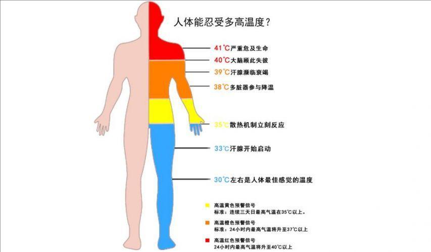 因爲當氣溫40℃時,人體的靜態代謝率(RMR)就會上升,達到43℃以上時,人體細胞就會開始死亡,達到50℃時,身體新陳代謝率會上升56%,心率會上升64%,人體內部溫度會上升1.8℃。