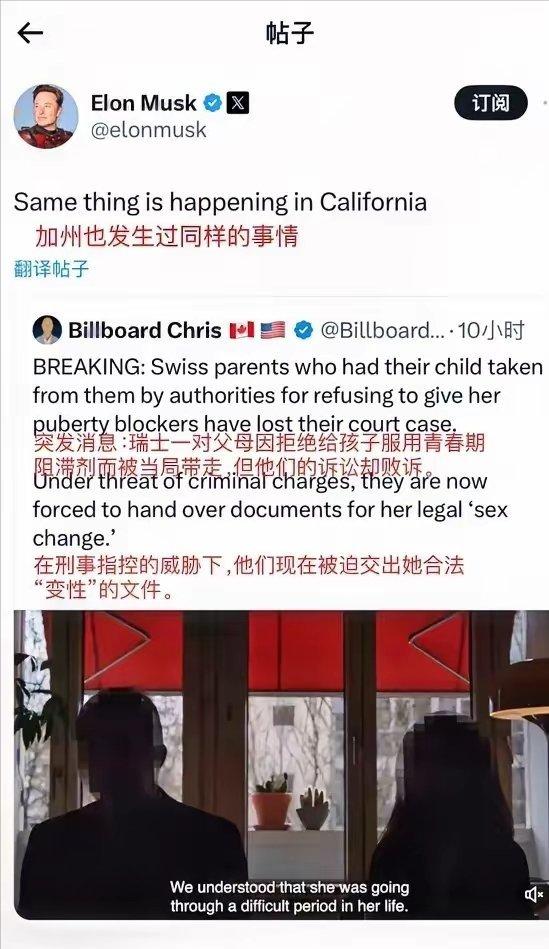 但是醫生不管這些,只要這些孩子去找醫生諮詢跨性別,醫生立馬就會開藥,甚至都不告訴孩子的父母,而且父母的干預還是犯法。這也是馬斯克非常痛恨跨性別的原因,讓他的好大兒變成了“閨女”。