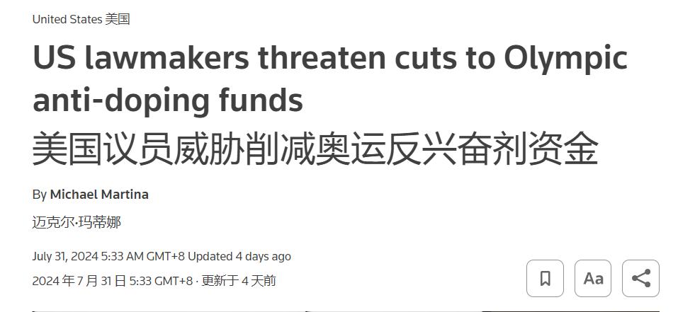 但美國纔不管什麼調查結果,他們就想利用這次機會抹黑中國。於是,他們利用手裏掌握的大量媒體資源,在輿論上製造出一副WADA包庇中國的戲碼,並施壓WADA對中國運動員進行高強度的興奮劑檢查。