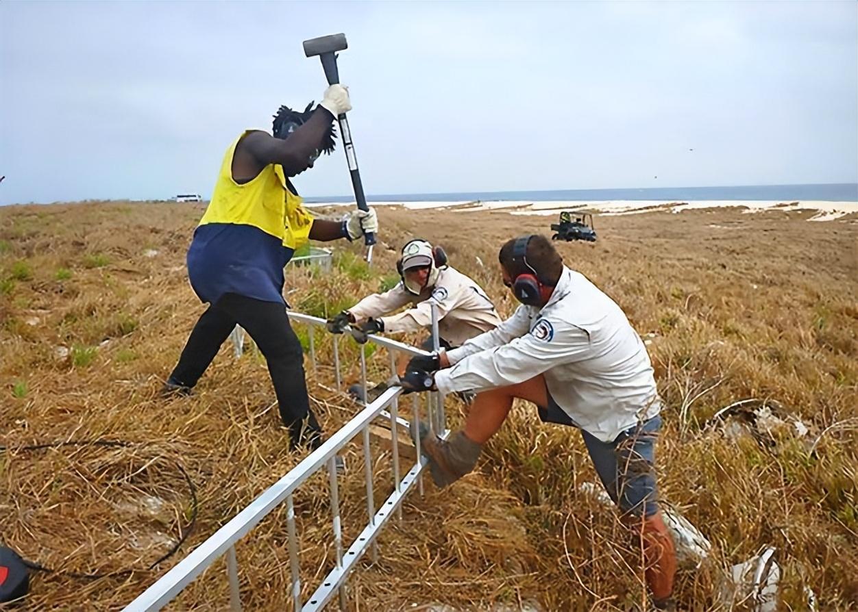 救援人員安裝圍欄 (圖片來源:Great Barrier Reef Foundation)