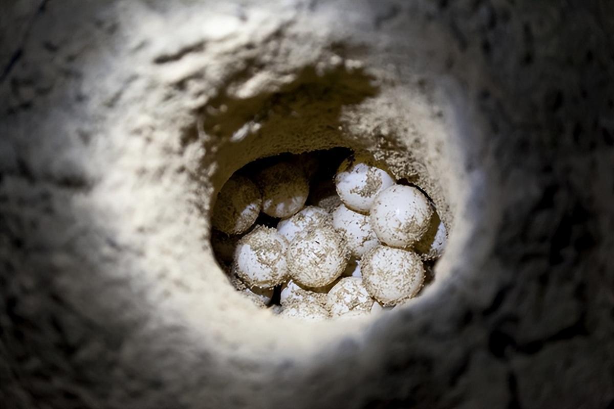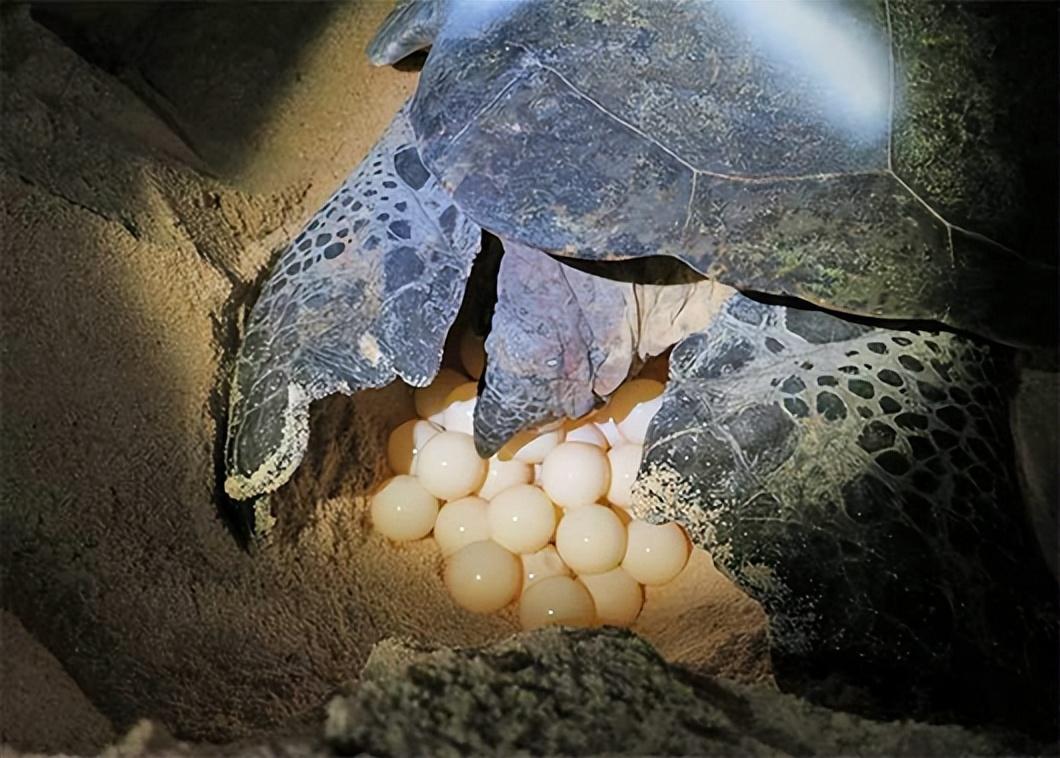 在築巢季節,海龜媽媽會產卵3-5次,每次能夠產下85-200枚卵。產卵需要耗費海龜媽媽大量的精力,因此大約每隔2-4年纔會返回交配一次。產卵兩個月後,小海龜們才能孵化出來,開啓“龜生”。