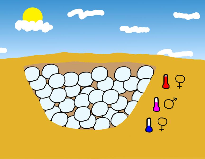 溫度依賴型性別決定一般見於爬行動物,後代雌雄比例隨溫度變化(圖片來源:參考資料[6])